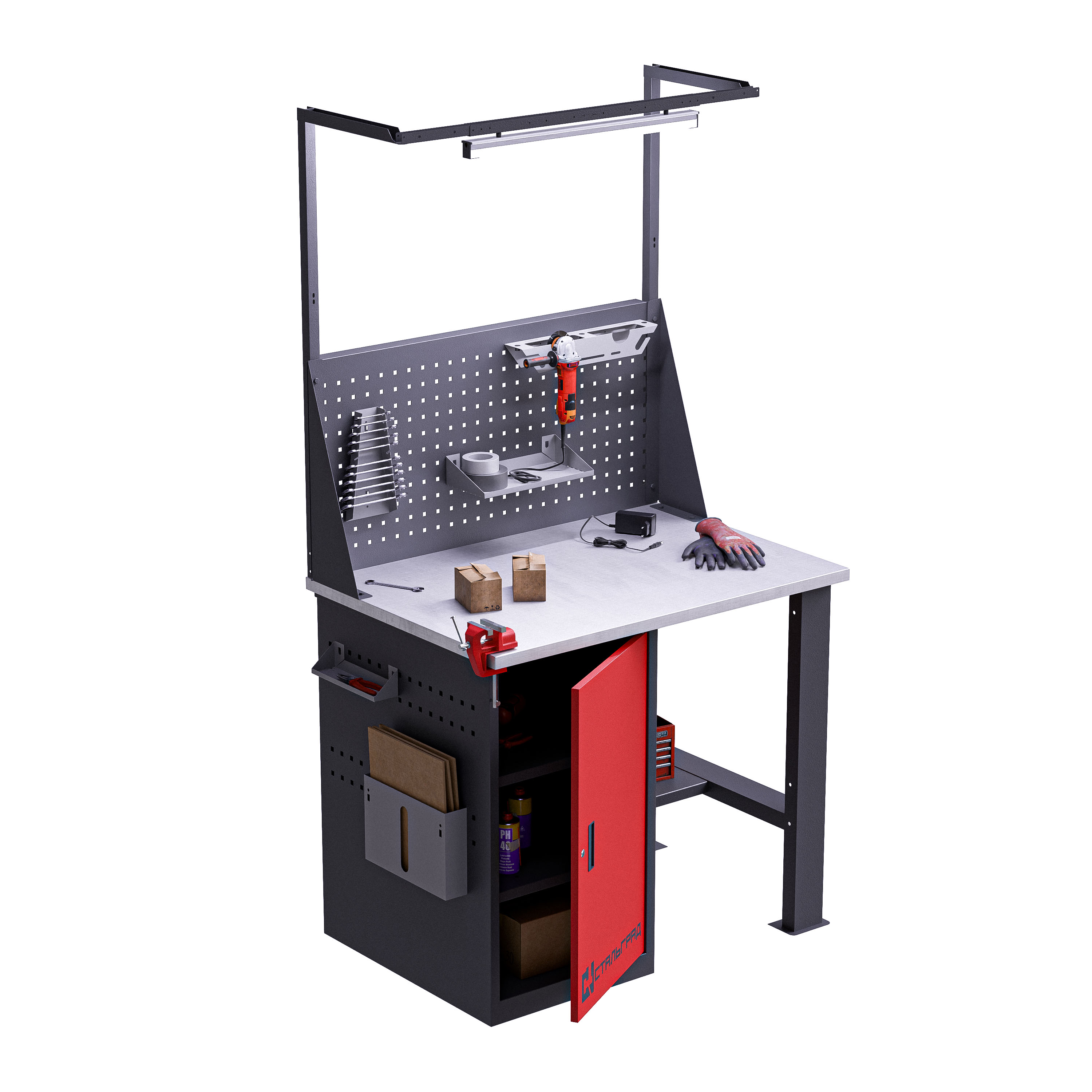 Экран, полки, освещение, тумбы, держатели инструмента и другие элементы помогают сделать рабочее место более удобным, функциональным и организованным. Подберем аксессуары под вашу модель верстака и подготовим выгодное предложение.