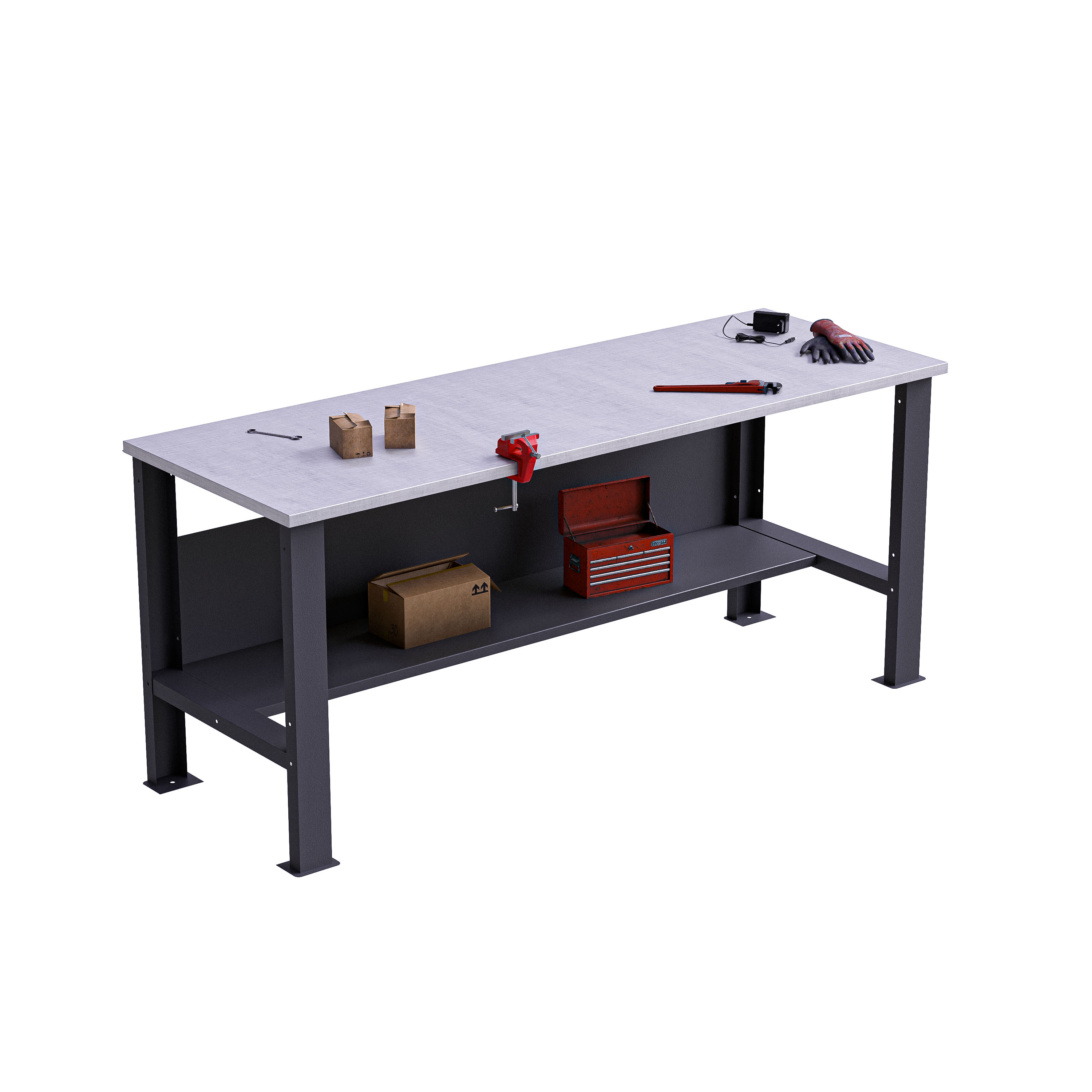 Верстак комплектуется металлической столешницей шириной 2000 мм и глубиной 700 мм. Рабочая поверхность рассчитана на повседневную эксплуатацию, устойчива к типовым механическим воздействиям и удобна для слесарных, сборочных, регулировочных и ремонтных операций.
