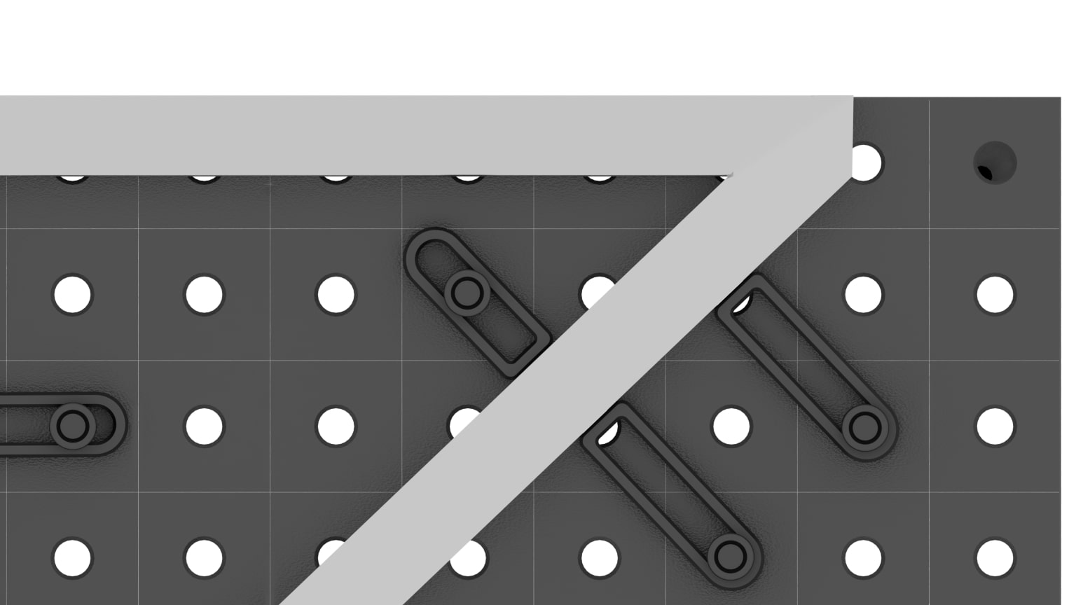 - Зафиксируйте угол/упор на столе по отверстиям системы D16.