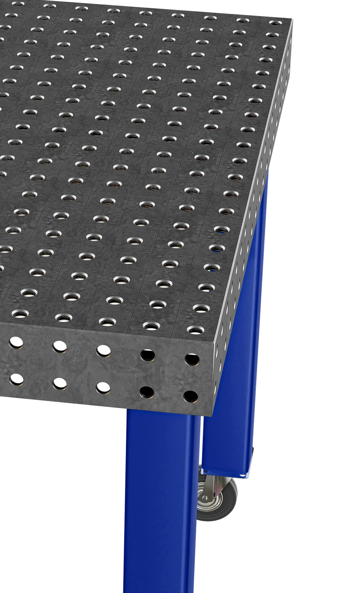 Столешница 12 мм, система отверстий D16, регулируемые опоры 700–750 мм. Мобильное исполнение (колеса с тормозом).