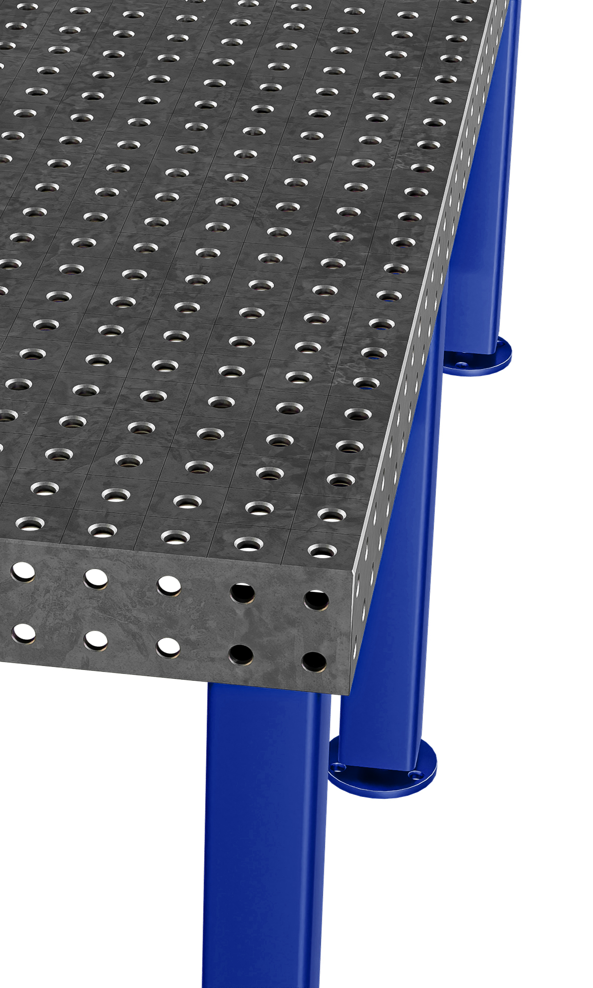 Столешница 10 мм, система отверстий D16, регулируемые опоры 700–750 мм.
