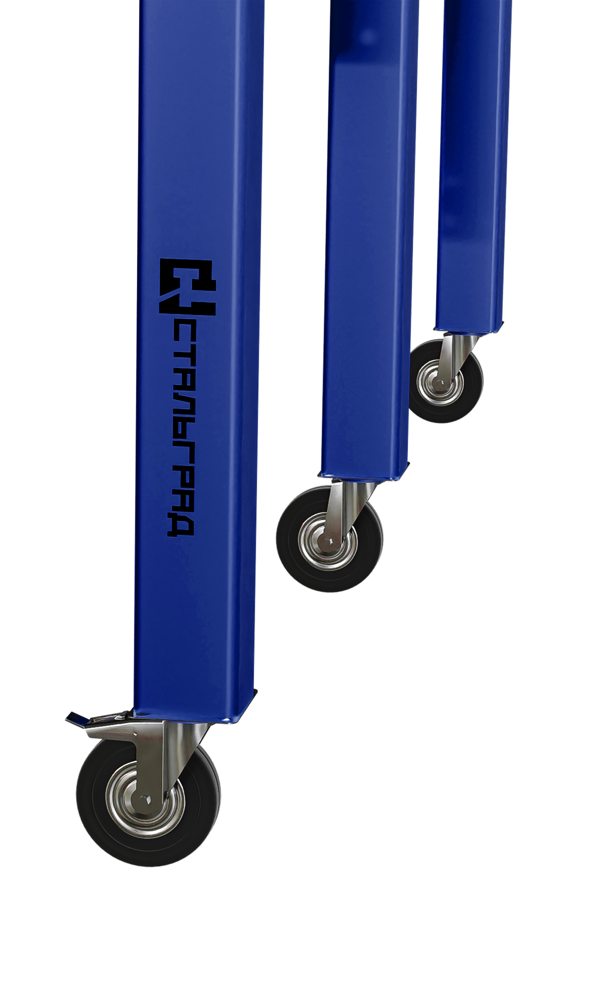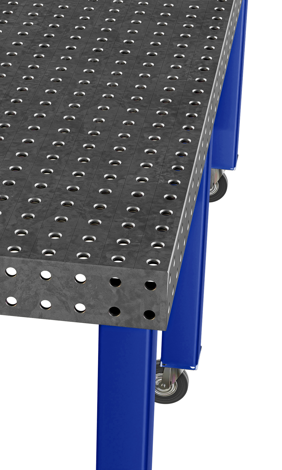 Столешница 10 мм, система отверстий D16, регулируемые опоры 700–750 мм. Мобильное исполнение (колеса с тормозом).