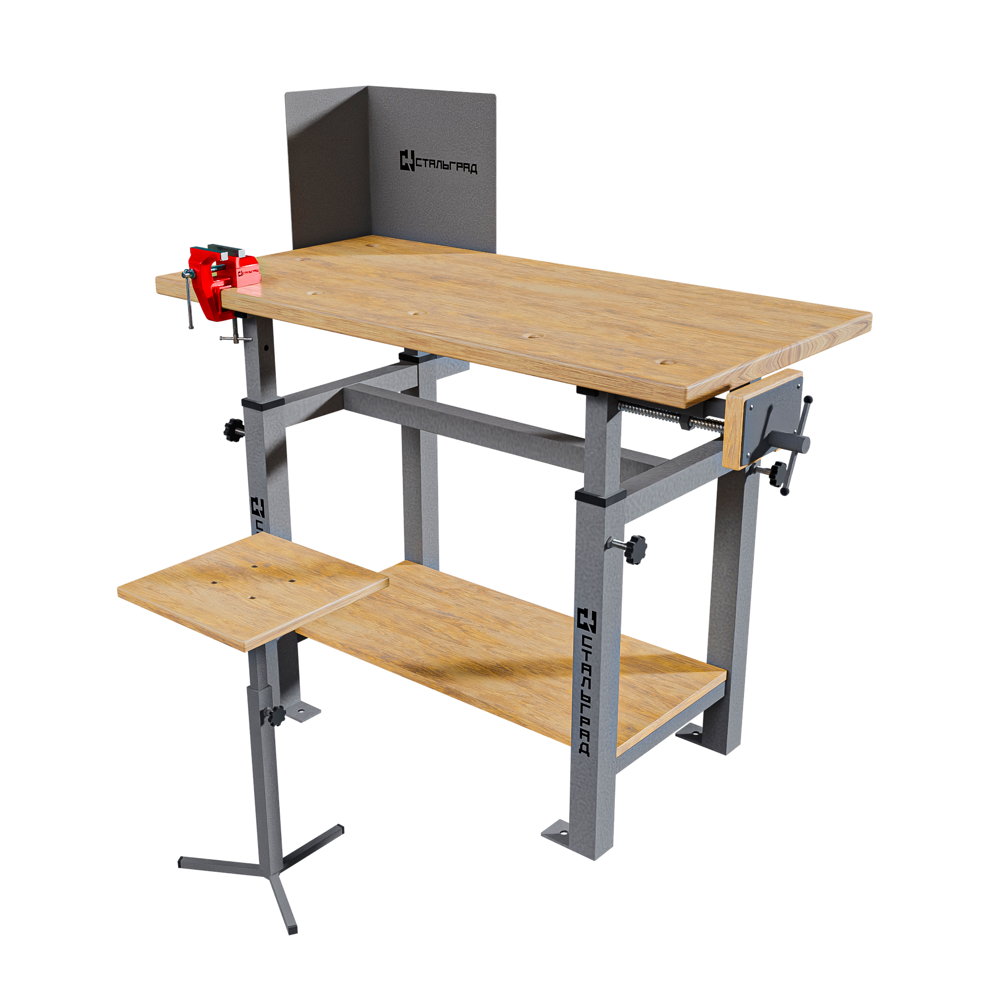 Верстак стандартный комбинированный «УЧЕНИК» СтальГрад на сварном основании МП с полкой и угловым защитным экраном