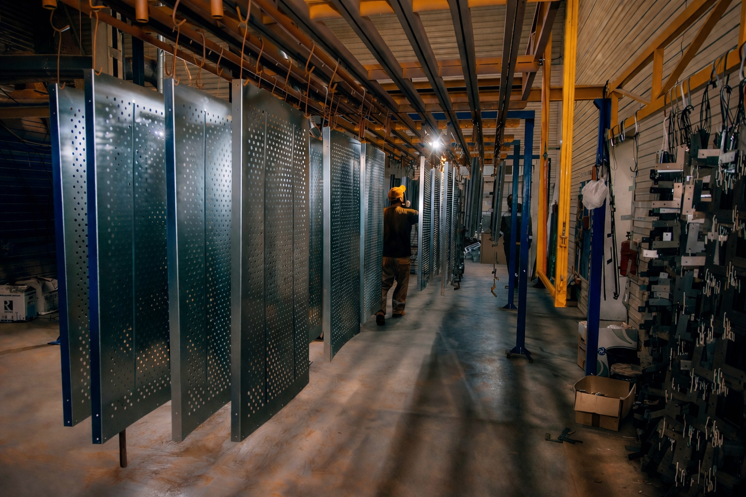 - Полный цикл металлообработки: раскрой, гибка, сварка, пробивка, штамповка, покраска и сборка.